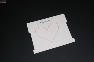 I didn't want the fabric to be floppy, so I cut out a card stock pattern that I ended up gluing inside in the next step. So, choose a shape you like, make yourself a pattern [or find something to print out}.